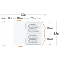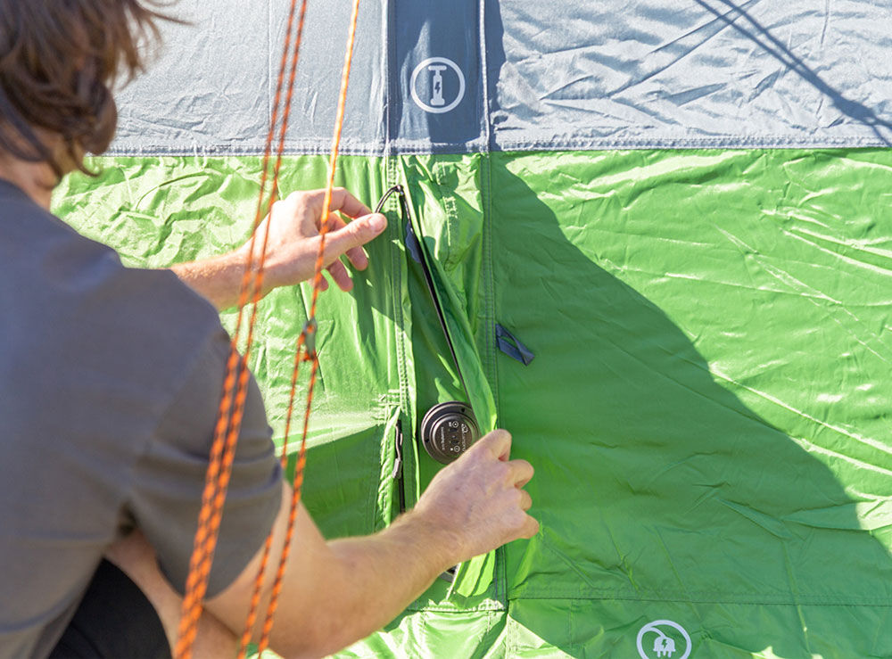 - Side entrance J-shaped doors with an adjustable toggle system for secure roll-up, plus large D-shaped mesh doors for ventilation and bug protection. A full-width 360° front door further enhances outdoor flow and easy access, giving you flexible entry and excellent airflow throughout the shelter.