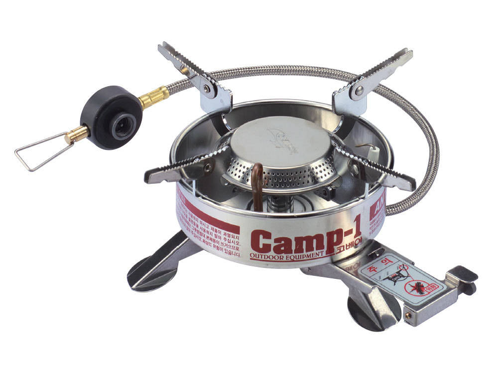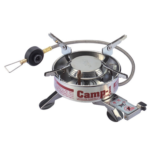 The Expedition has a double-pipe, anti-flare system to prevent liquefaction and gas flaring. The ignition plate makes ignition easy and maximizes power, as wind breakers operate the pot supports. Foldable legs provide stable support for larger cooking pans. This stove is especially durable with its fluorine hose and stainless rustproof components.
