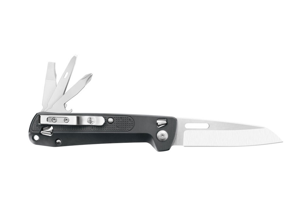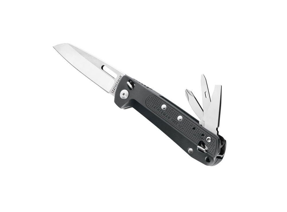 Leatherman Free places every implement on the outside of the tool, letting you access everything with a single hand. Locking and unlocking is safe and secure thanks to the newly designed cam locks. Leatherman Free lets you keep your eye on the task, not the tool.