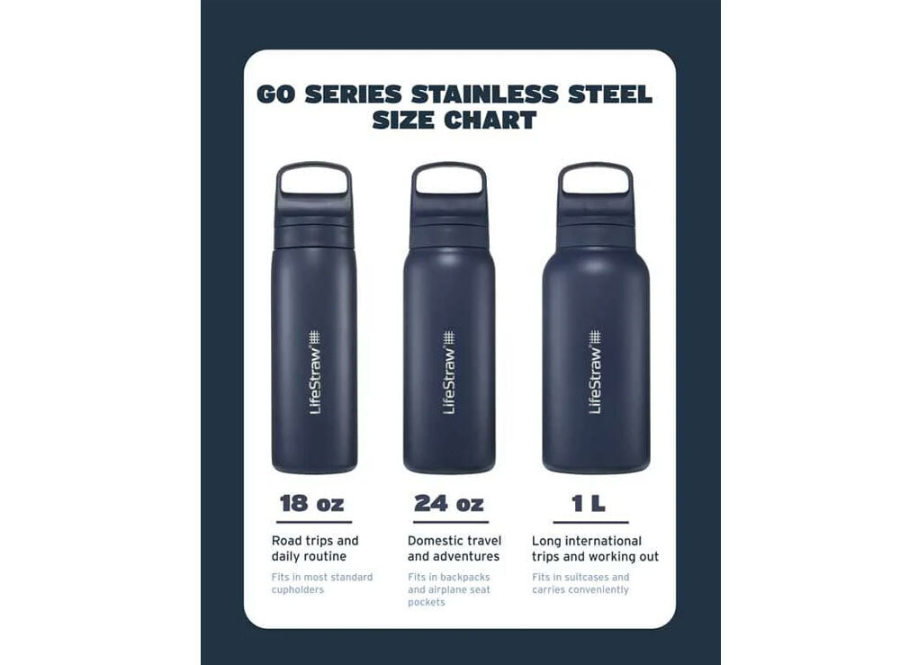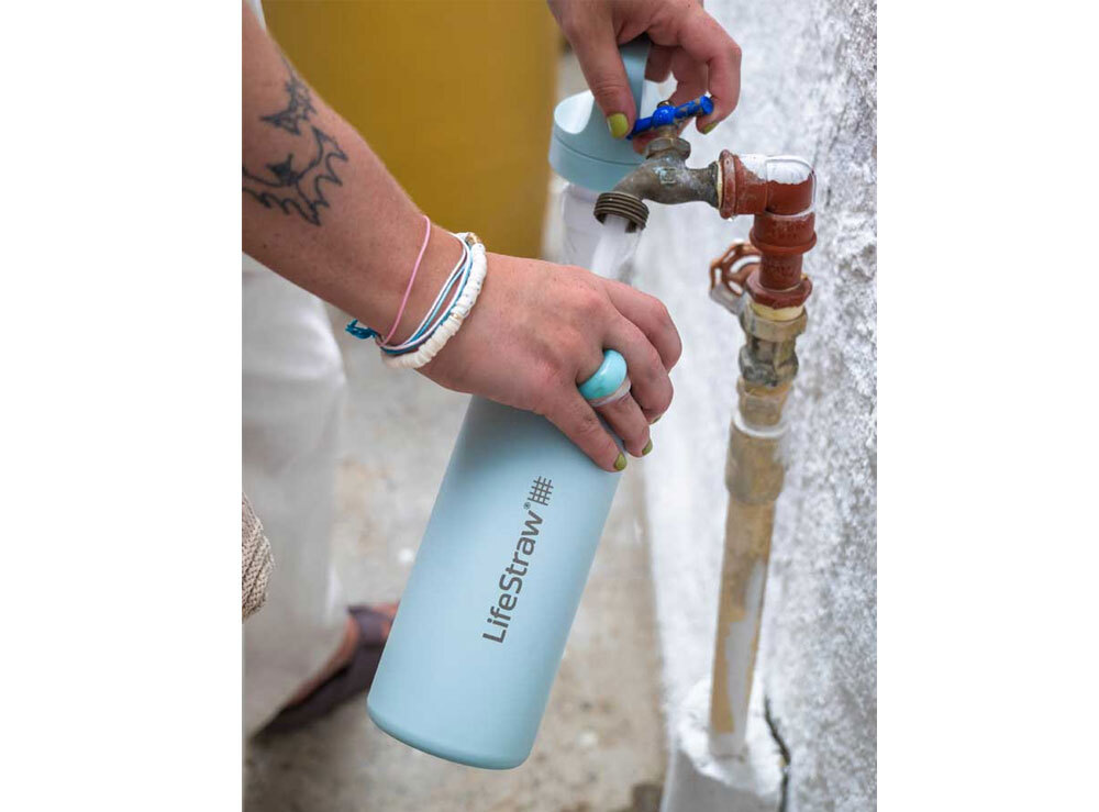 The LifeStraw Go Stainless Steel Water Filter Bottle is the ULTIMATE TRAVEL SIDEKICK. The 530ml stainless steel BPA-Free bottle filters out nasties so you can fill up from airport bathrooms, a tap in Mexico, or a gas station while road-tripping.