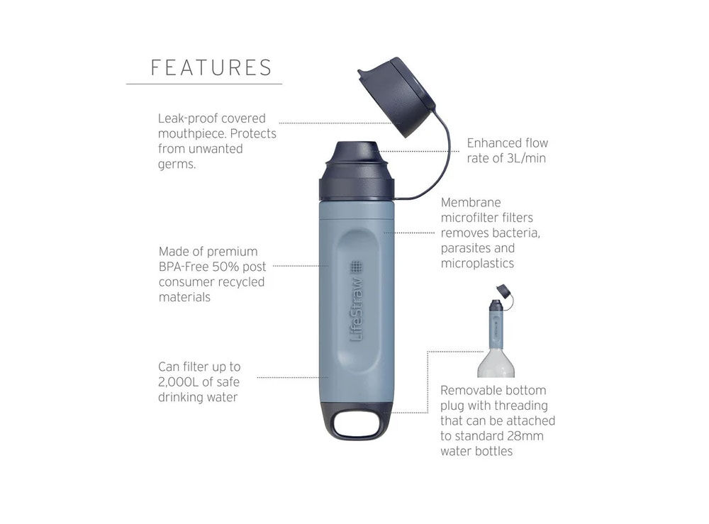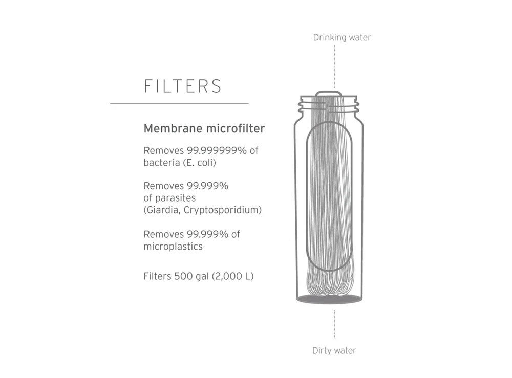 - ULTRALIGHT + LONG-LASTING: only 48.2g; membrane microfilter lasts up to 2,000 liters.