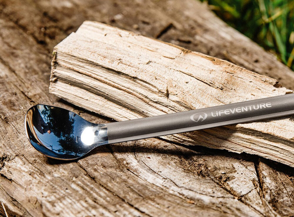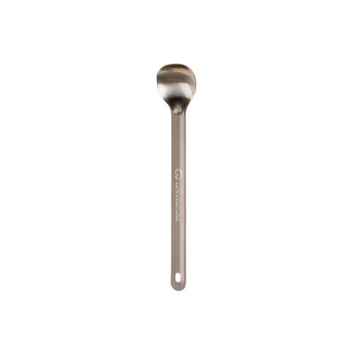 The titanium spoon is long handled and made from ultra-lightweight food grade titanium and as strong as steel but almost half the weight.