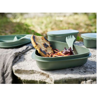 If you have been looking for the perfect lunchbox, you can stop looking now. Light My Fire's Bowl'n Lid BIO - Hazy Blue is easy to bring along and works just as well for the packed lunch at work as on the trip. The bowl has a tight-fitting lid, a practical holder for your Spork and is made of biobased, BPA free plastic, safe for use in both the microwave and dishwasher.