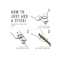 - Just add a stick: Grandpa´s FireFork is a nice tool for cooking your fire on a hot fire. Just add a stick (no need to cut fresh branches) then just add whatever you want to cook over the fire.