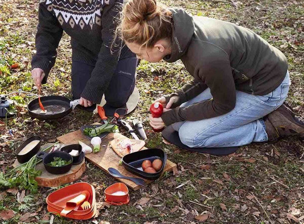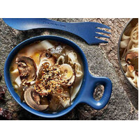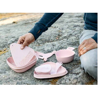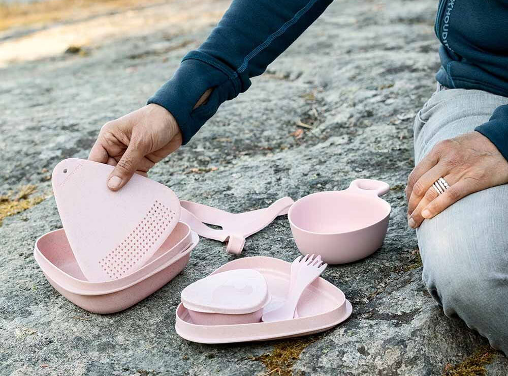 The stackable pieces are held together with a strap-harness. Made from 100% BPA free Biobased plastic, which is also microwave and dishwasher safe. Whether cooking a three-course meal in the woods, refuelling, or packing your lunchbox in style, the Outdoor MealKit has it all. Check it out.