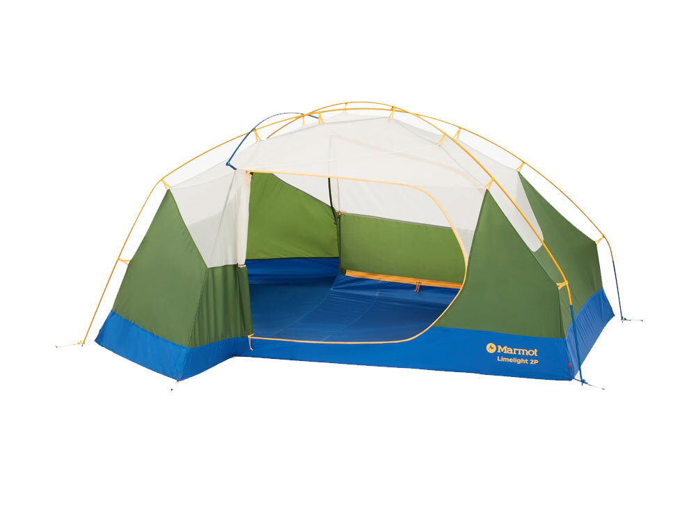 Your new go-to home in the hills, the Marmot Limelight 2P Tent is a roomy tent with pre-bent poles that add space without adding weight.