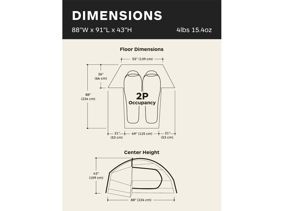 - Zone pre-bend construction creates vertical walls for a roomier sleeping area and greater headroom; freestanding design with two D-shaped doors