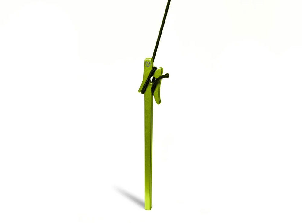 The Nemo Airpin Ultralight Stakes have never been so smart. Airpin's three-point locking system holds cord tight and eliminates the need for knots, cord locks, or guyline tensioners. The tapered geometry is ideal for driving into the ground and the 7075 aluminum offers superior strength for its minimal weight.