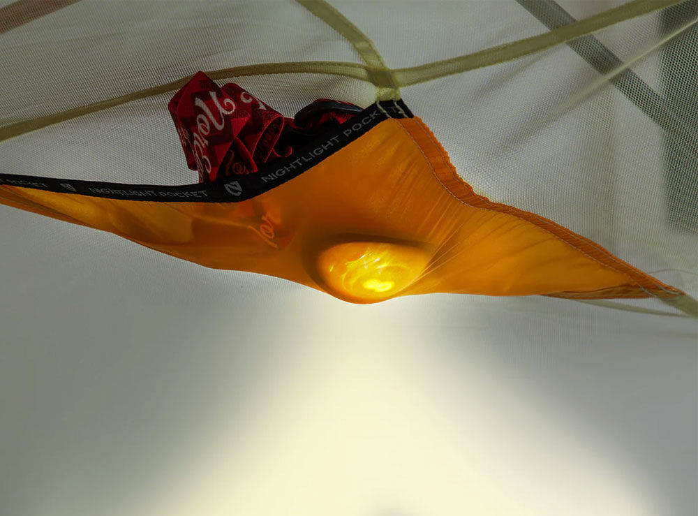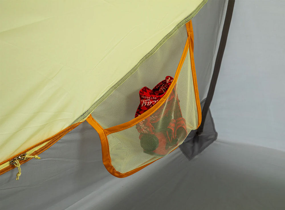 The Nemo Aurora 2P in Mango / Fog is designed for those who want a high-performance camping experience without the "cluttered" feel of traditional backpacking tents. Combining vibrant aesthetics with a massive interior volume, the Aurora features steep side walls that maximize livable space, making it perfect for both the trail and the campground.