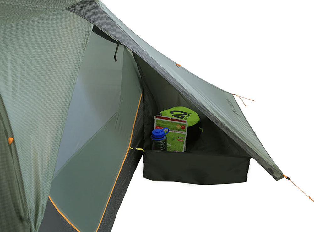The tent itself features a tapered floor plan to save weight without sacrificing livable space, and a tub floor design to increase privacy and weather protection. Each asymmetrical vestibule keeps gear tucked out of the way, and our Landing Zone™ waterproof storage tub offers a protected, mud-free dumping ground.