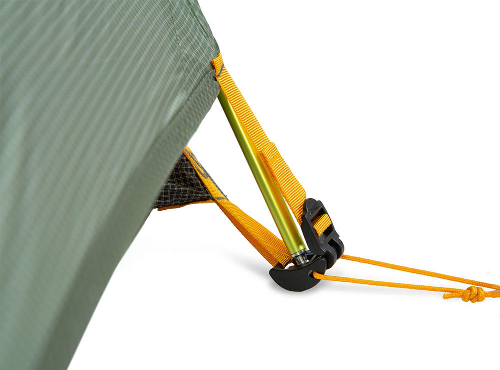 - Color-coded anodized poles, matched webbing, and Jake’s Foot pole clips for an intuitive setup
