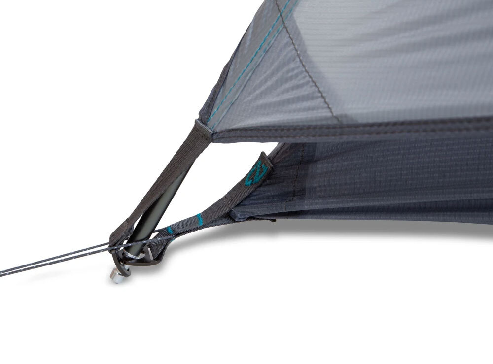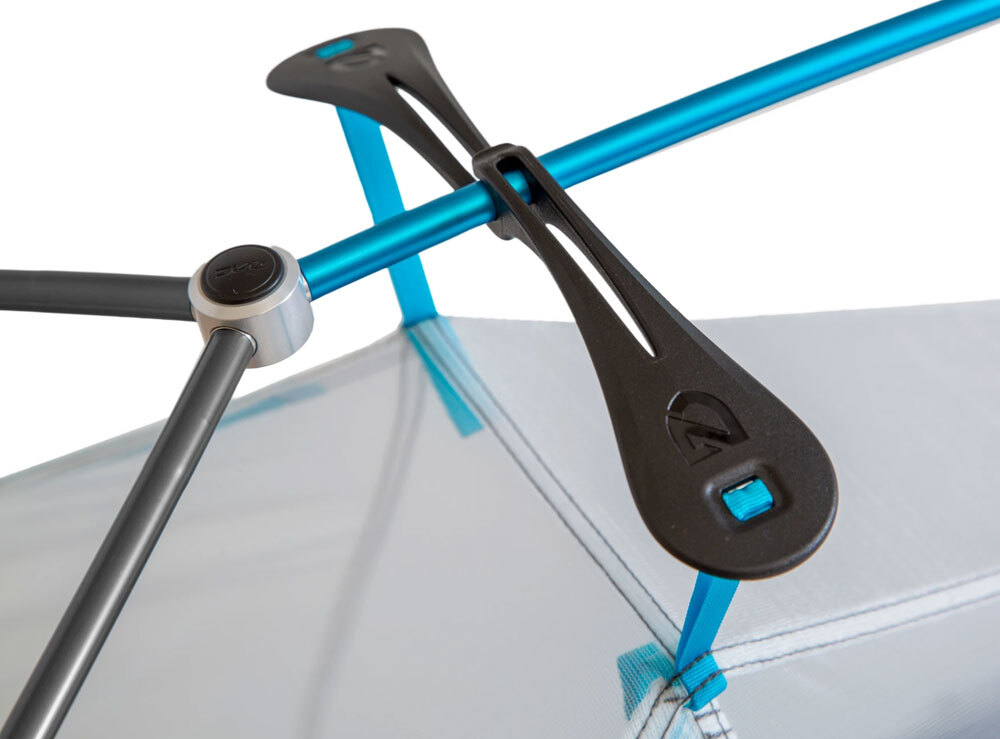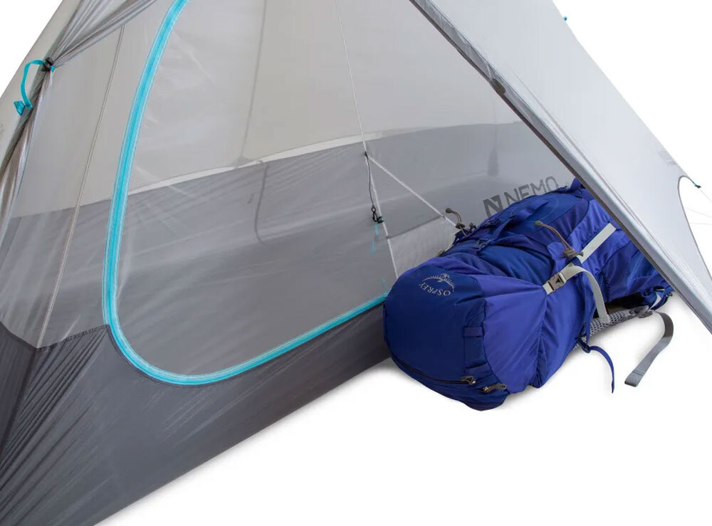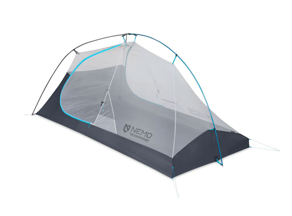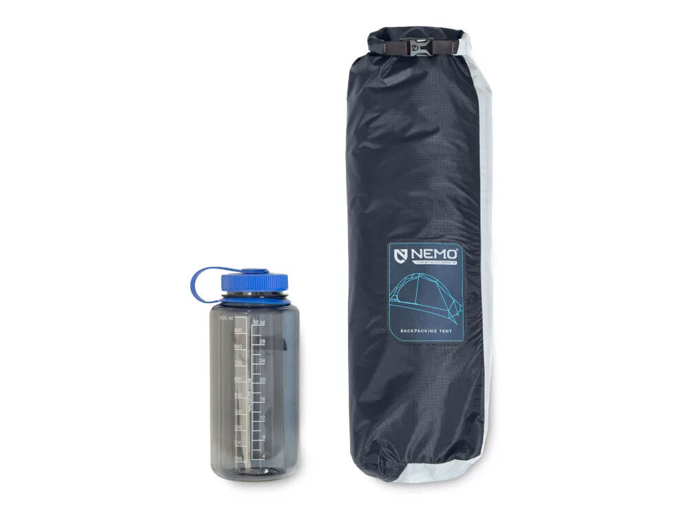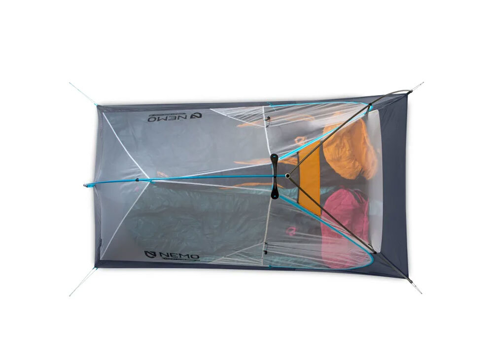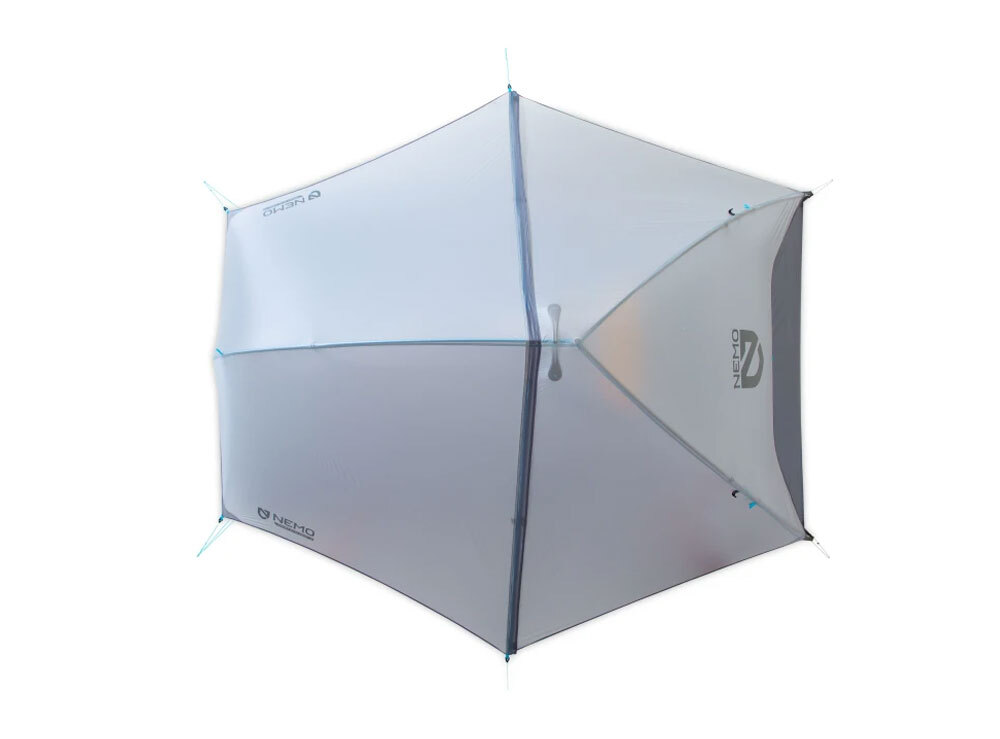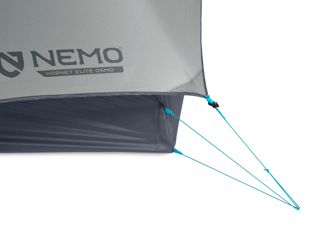 The Elite moniker means Nemo has examined every detail of this tent for weight savings and performance enhancement. The poles are top-shelf DAC Featherlite. Every stitch, cord, and webbing detail is optimized for weight and strength. Nemo's Nightlight Pocket™ headlamp diffuser adds a warm glow at night without the weight of built-in lighting. And their patent-pending Flybar™ volumizing pole clip brings headroom to the interior volume without adding unnecessary weight. The Hornet Elite OSMO tent also features Nemo's convenient new Gatekeeper™ door tie-back and their Divvy Cube™ rectangular stuff sack that nests more efficiently in your pack and allows you to split the weight with a partner. By driving technology and design forward, NEMO’s Hornet Elite OSMO is a maximalist approach to minimalist design.