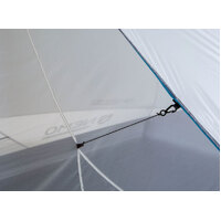 • Triangulated volumizing guy-outs at corners increase volume at the foot, protecting sleeping bags from tent wall condensation.