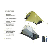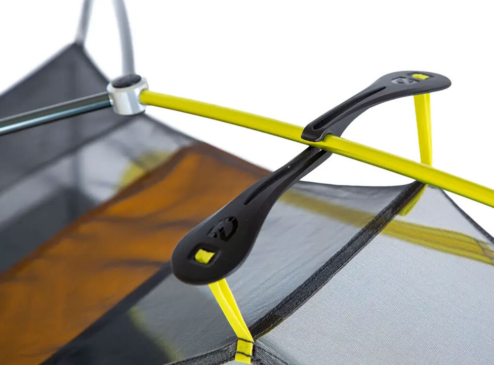 - Triangulated volumizing guy-outs and struts at corners increase volume at the foot, protecting sleeping bags from tent wall condensation