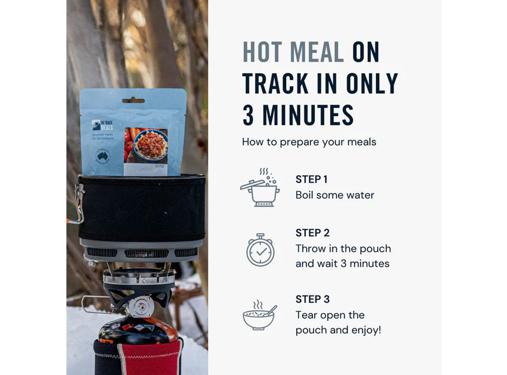 A comforting classic, The On Track Beef Bolognese is made with lean beef and fragrant vegetables for rich, satisfying flavour. Pair it with a side of pasta or rice as an easy, hearty meal, wherever the adventure takes you. Forget freeze-dried. When it is time to refuel outdoors, real food makes all the difference.