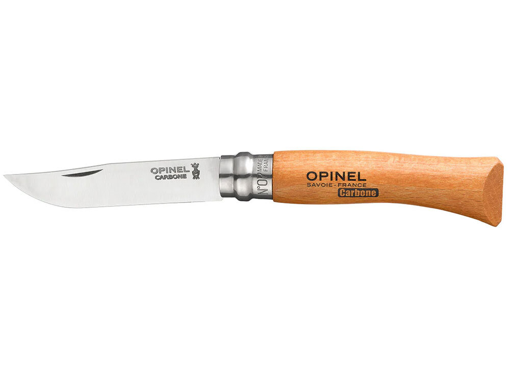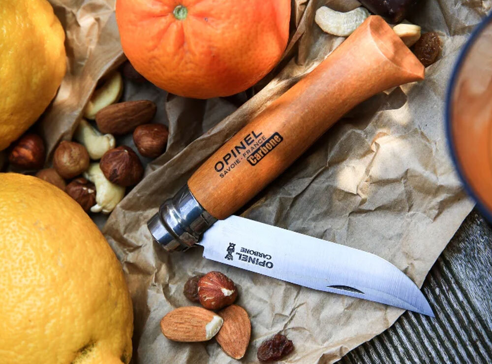 Opinel carbon steel is extremely hard, thereby guaranteeing excellent cutting quality, good wear resistance and easy regrinding. Carbon can corrode easily. It's advised to avoid damp locations and to wipe and grease the blade after use.