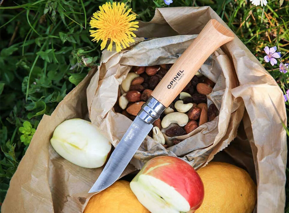 The beech wood handle is comfortable in the hand. Beech is the most commonly used wood for the manufacture of Opinel handles. From France, Opinels beech wood is hard, durable and easy to work. With a homogeneous appearance, its light color varies from yellow to pink. It is characterized by the presence of numerous small dark dashes.