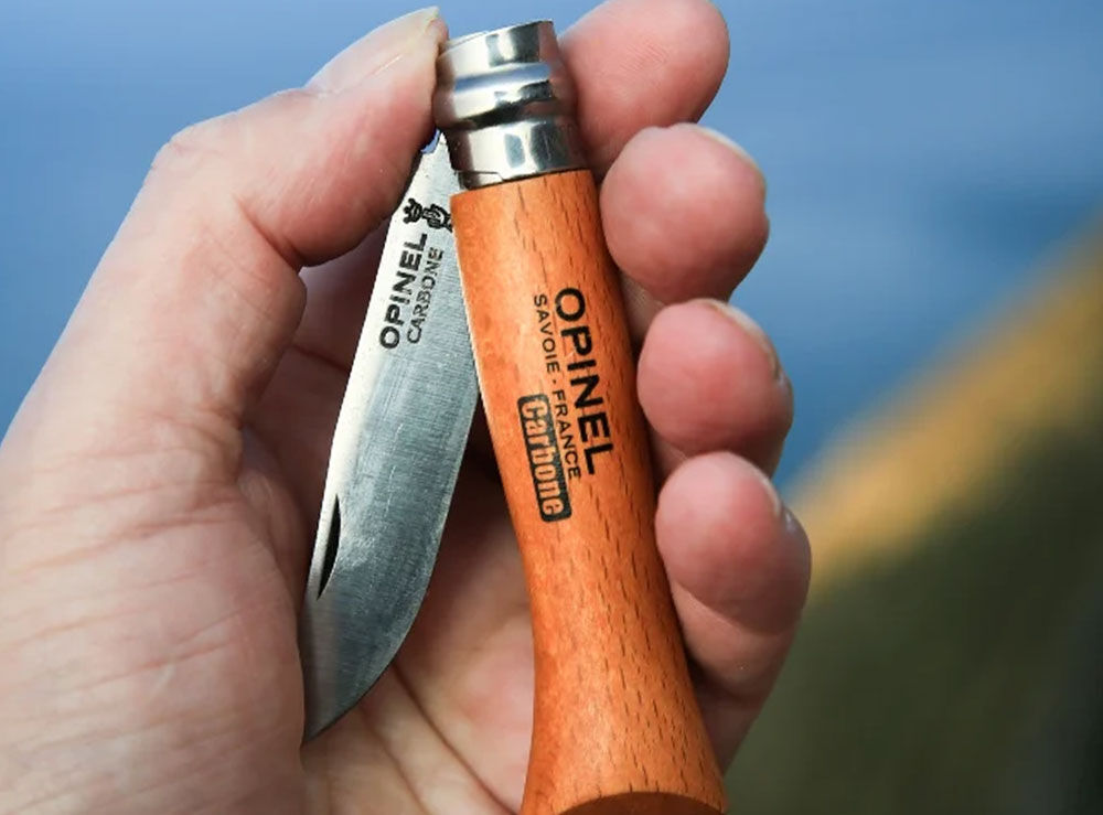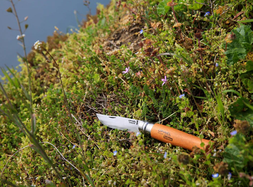 - Handle: Beech is the most commonly used wood for the manufacture of Opinel handles. From France, our beech is hard, durable and easy to work. With a homogeneous appearance, its light color varies from yellow to pink. It is characterized by the presence of numerous small dark dashes.
