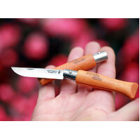 The beech wood handle is comfortable in the hand. Beech is the most commonly used wood for the manufacture of Opinel handles. From France, Opinels beech wood is hard, durable and easy to work. With a homogeneous appearance, its light color varies from yellow to pink. It is characterized by the presence of numerous small dark dashes.