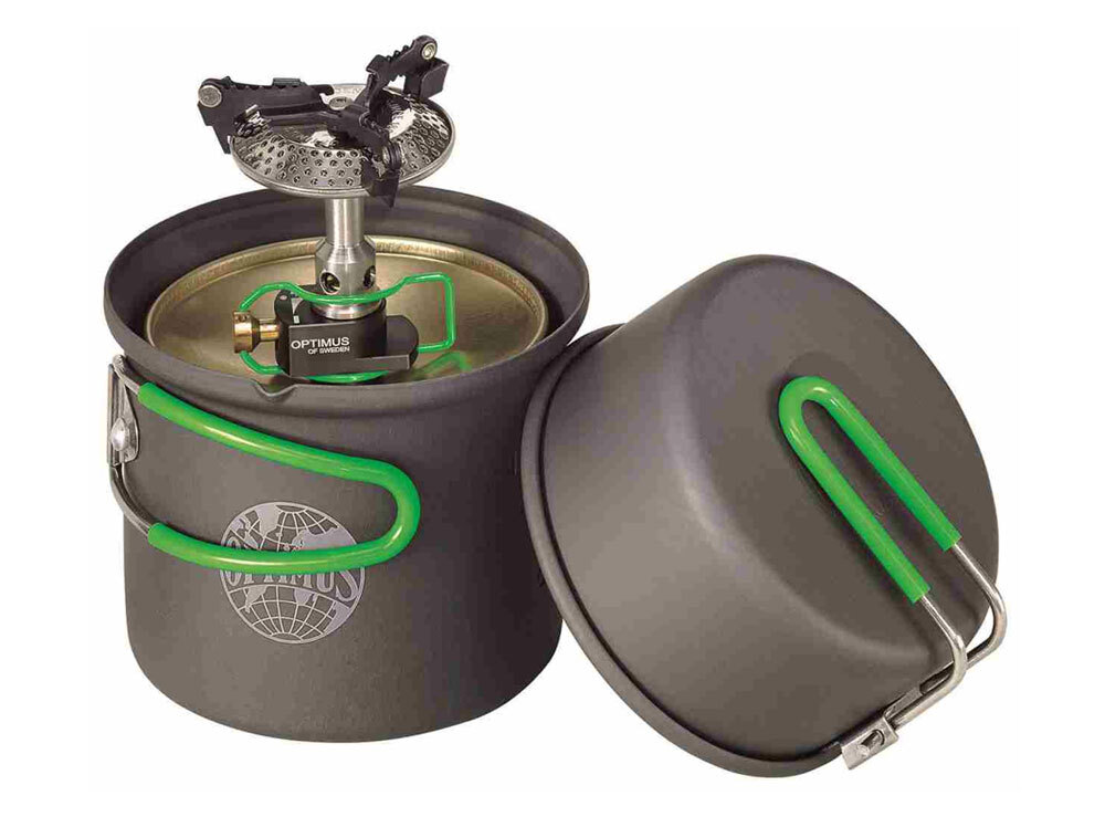 Note: When travelling, the set also offers ample space for a 100g/4oz gas cartridge and Optimus Folding Spork (not included).