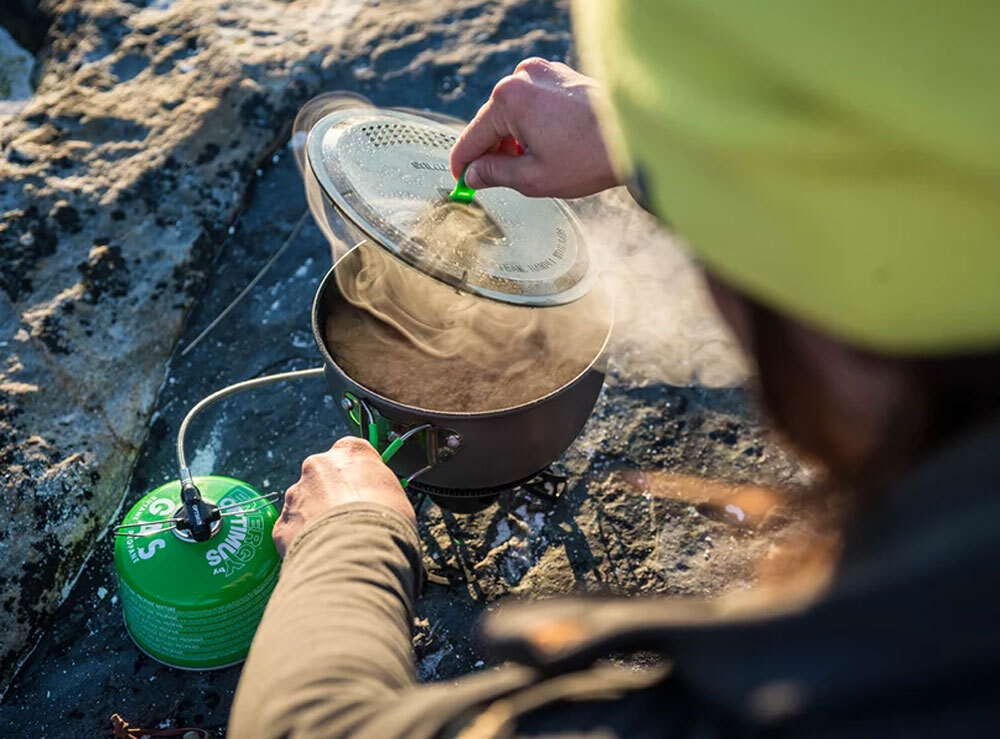 The lightweight Optimus Terra Xpress HE Cooking Pot with a non-stick coating won’t load you down, but its large capacity means you can cook enough to fill your stomach after a day's tramp.