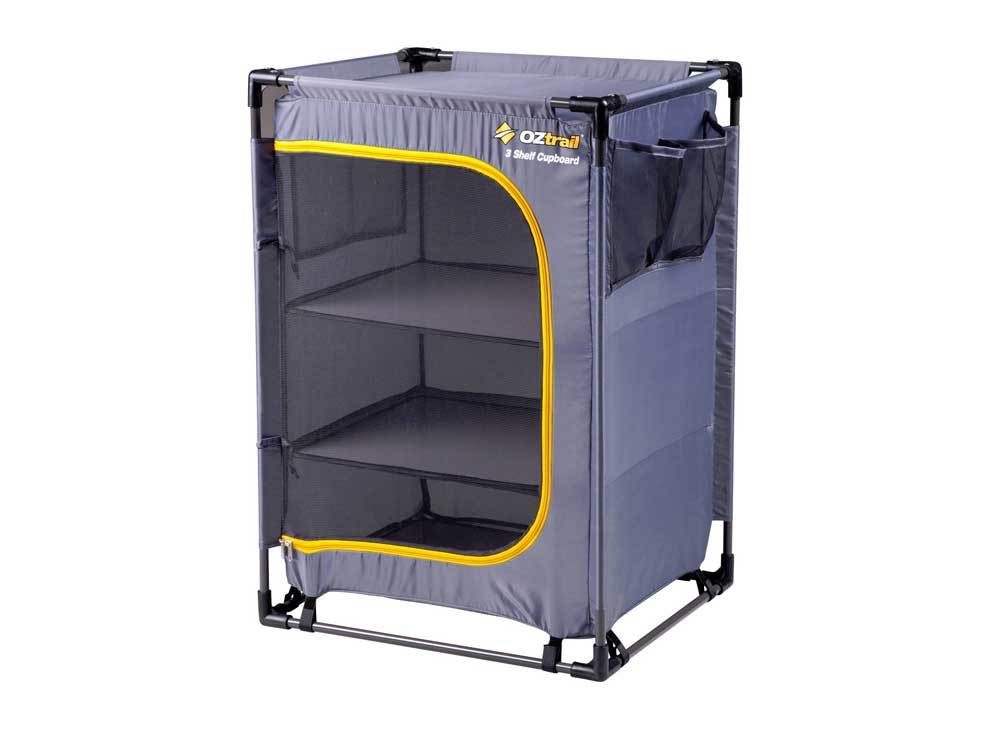 The OZtrail 3 Shelf Cupboard / Pantry features a steel frame, 3 shelves, mesh door and is easy to assemble.