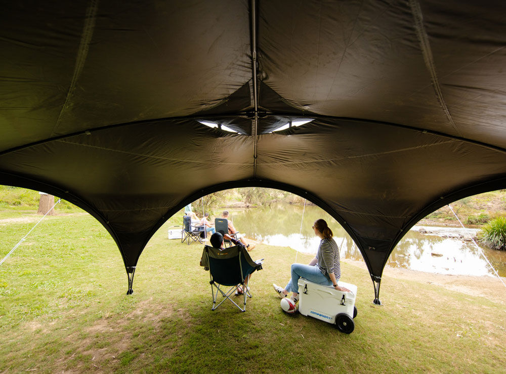 - Full steel frame combined with a 75 Denier, 1000mm water rated, seam sealed BlockOut canopy which helps to block heat and keep you cool.