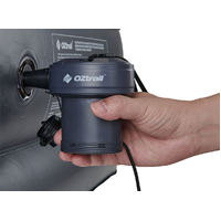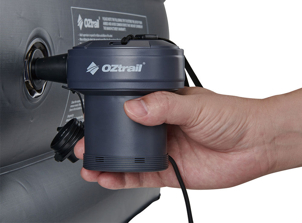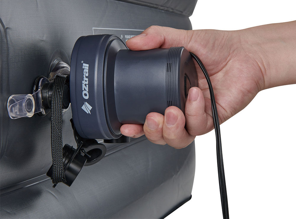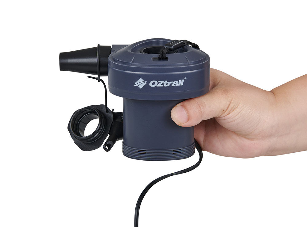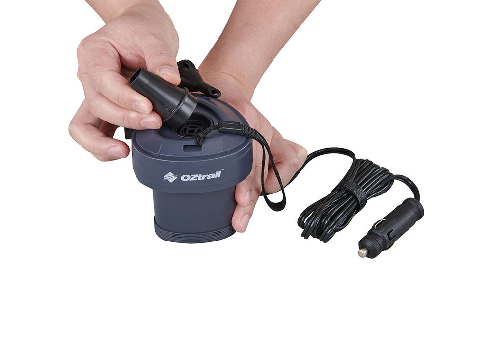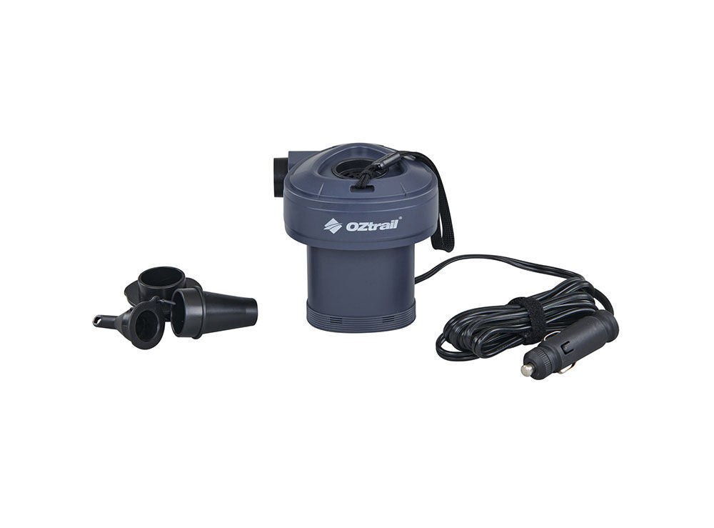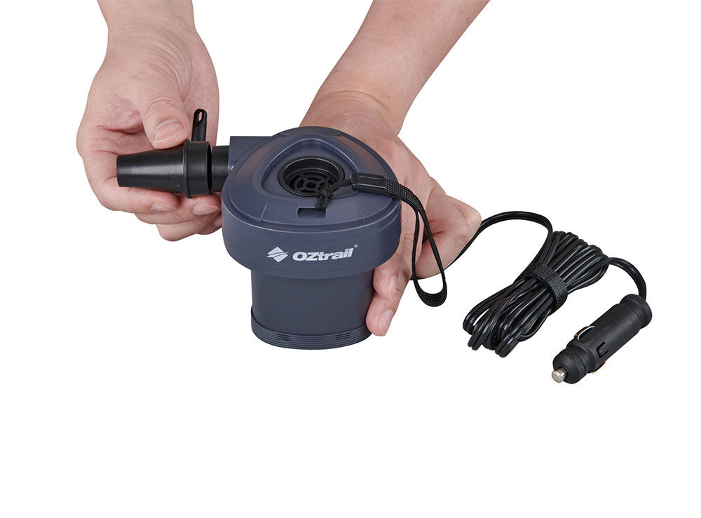 The OZtrail Air Pump 12v is developed for quick and easy inflation, the 12V Air Pump is a convenient and portable device. Delivering an airflow of 300L per minute, it is perfect for inflating air beds, pool floats, and toy inflatables. This compact and lightweight pump can operate for up to 15 minutes when connected to a 12V power supply.