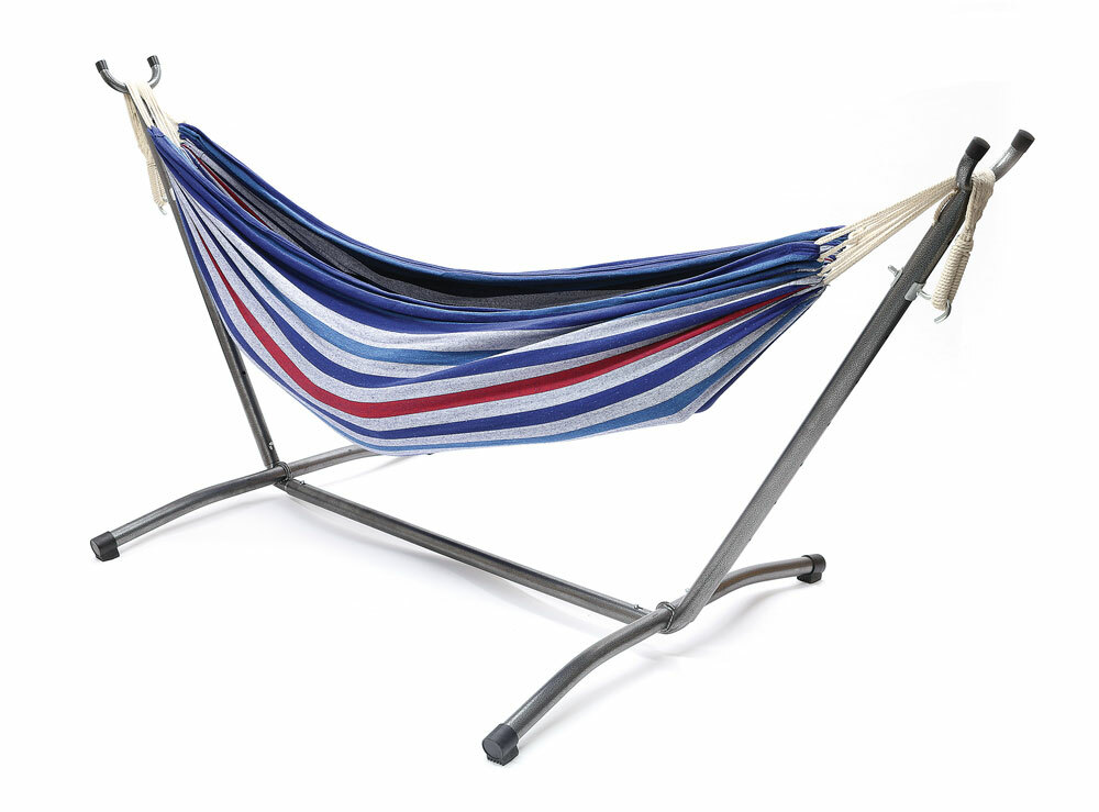 The OZtrail Anywhere Hammock features a sturdy steel frame and has room for two to chill out anywhere!