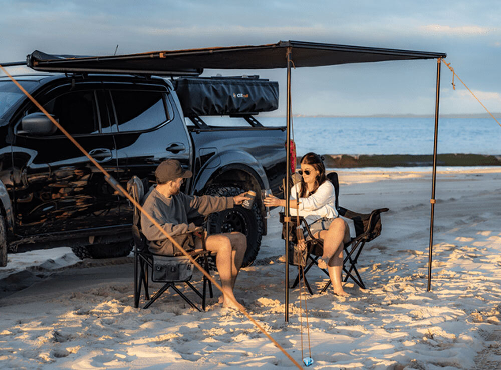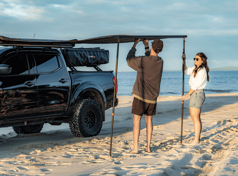 The OZtrail Blockout Awning 2.0 x 2.5 m provides quick and easy shade cover if you have a smaller vehicle. Made from heavy duty 280gsm Ripstop polycotton canvas with a 1500mm waterhead rating and OZtrail's BlockOut technology, it blocks up to 95% of light and reduces temperatures by up to 10 degrees, keeping you dry and shaded.