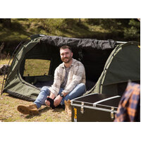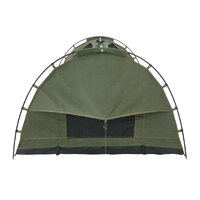Featuring a free standing design for quick set up and extra internal space along with a comfortable 5cm high density foam mattress to give you a comfortable nights sleep. There's plenty of ventilation throughout thanks to the zippered head and foot windows, along with the full sized mesh door on the sides for great cross airflow.