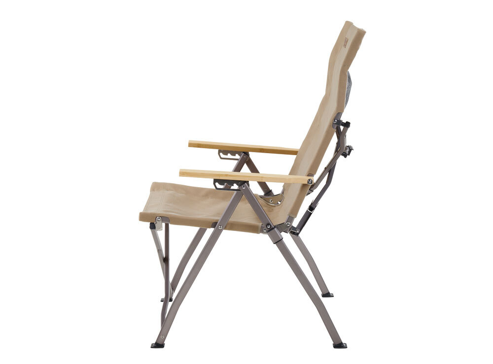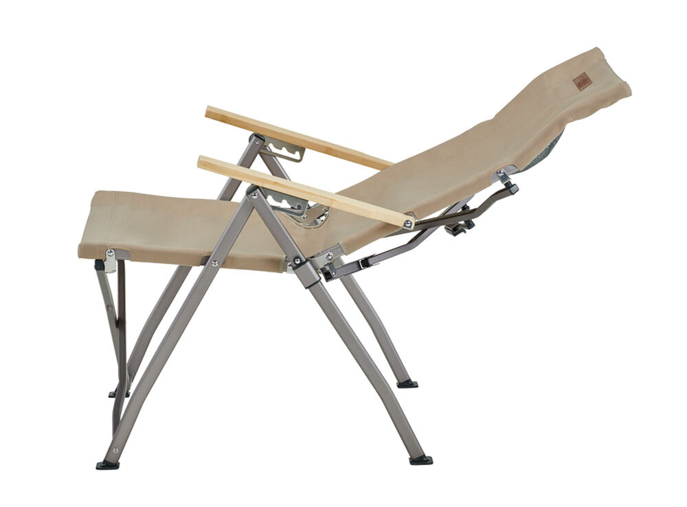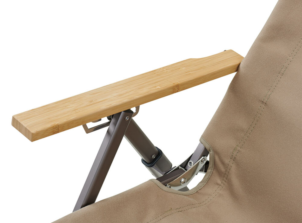 Not only does this chair provide comfort, but an eco-conscious canvas fabric constructed with recycled plastic bottles and sustainably sourced bamboo armrests. Its lightweight aluminium frame and 4-position reclining action only add to the pros!