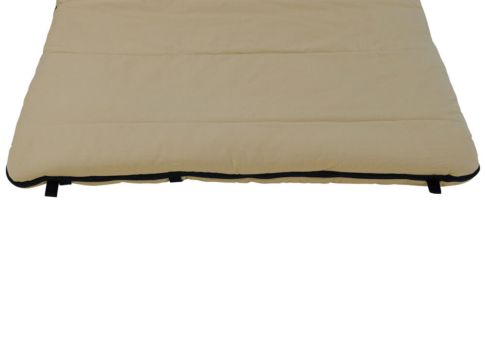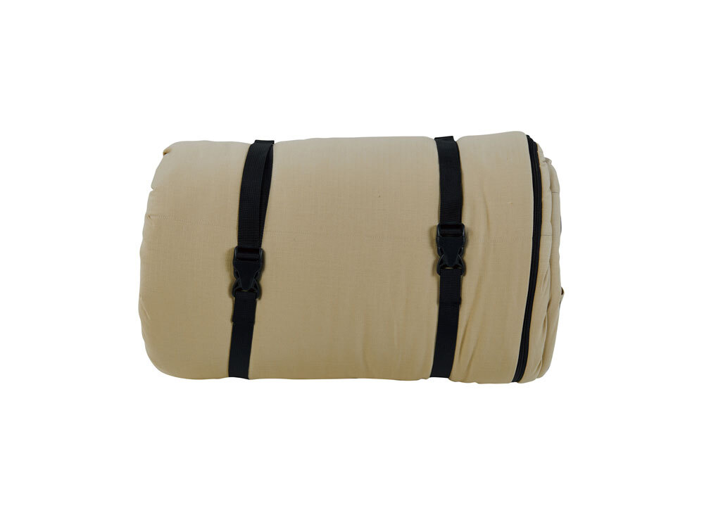 The OZtrail Drover Sleeping Bag -7 deg.c is designed for the adventurous traveller who wants a rugged and comfortable sleeping bag for their journeys. It features a durable 200gsm Ripstop Cotton Canvas outer layer and a warm 100% cotton flannel inner layer. The bag is filled with 80% recycled material, which is equivalent to 75 plastic bottles, making it an eco-friendly option.