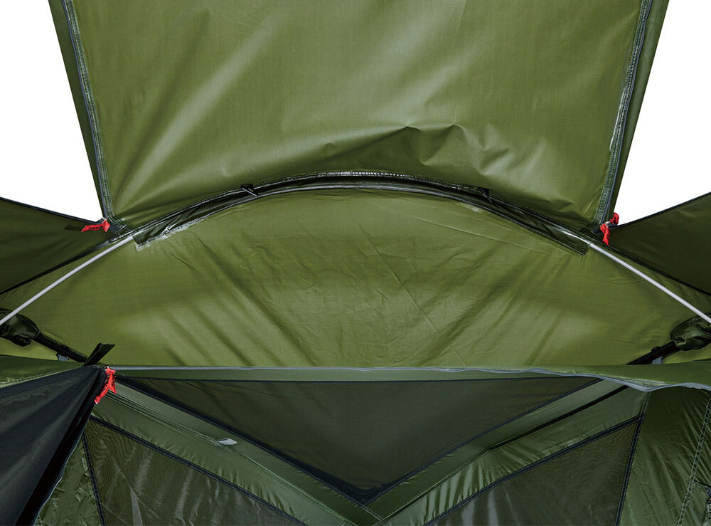 The large gusseted windows ensure excellent airflow, reduce condensation, and can be pegged out in bad weather while still providing ventilation. The front vestibule area features an easy-to-install brow pole, providing extra headroom for easier access when entering and exiting the tent.