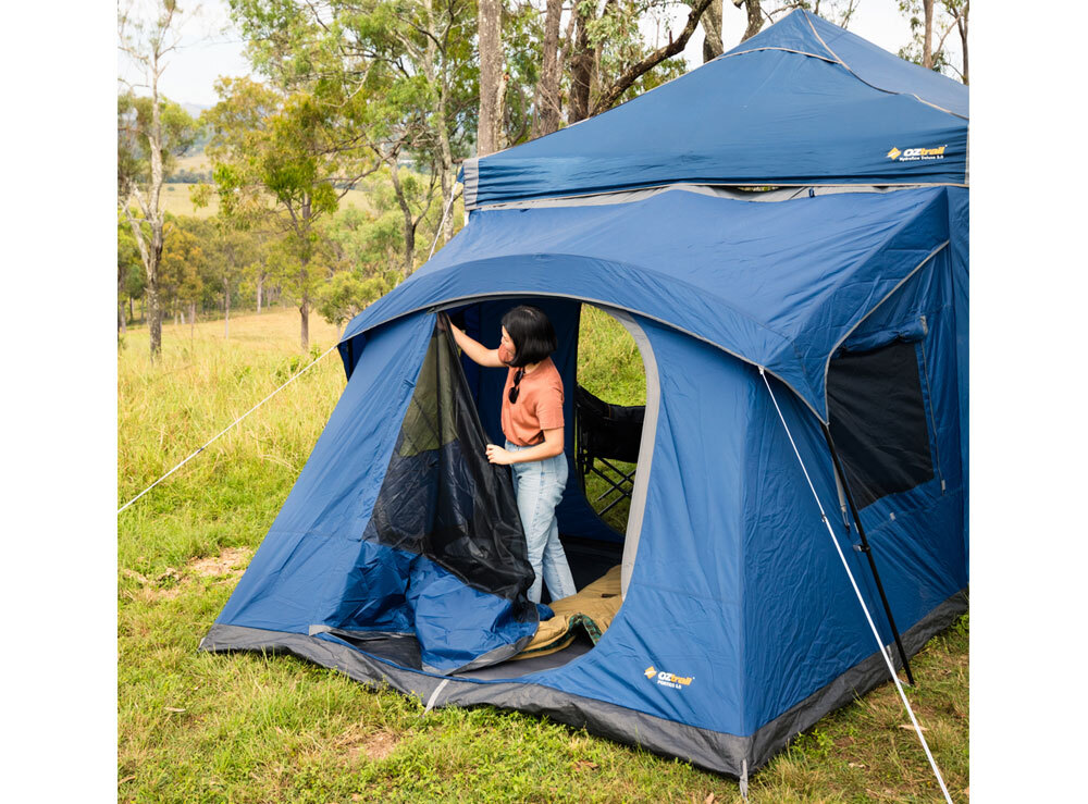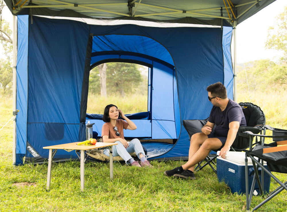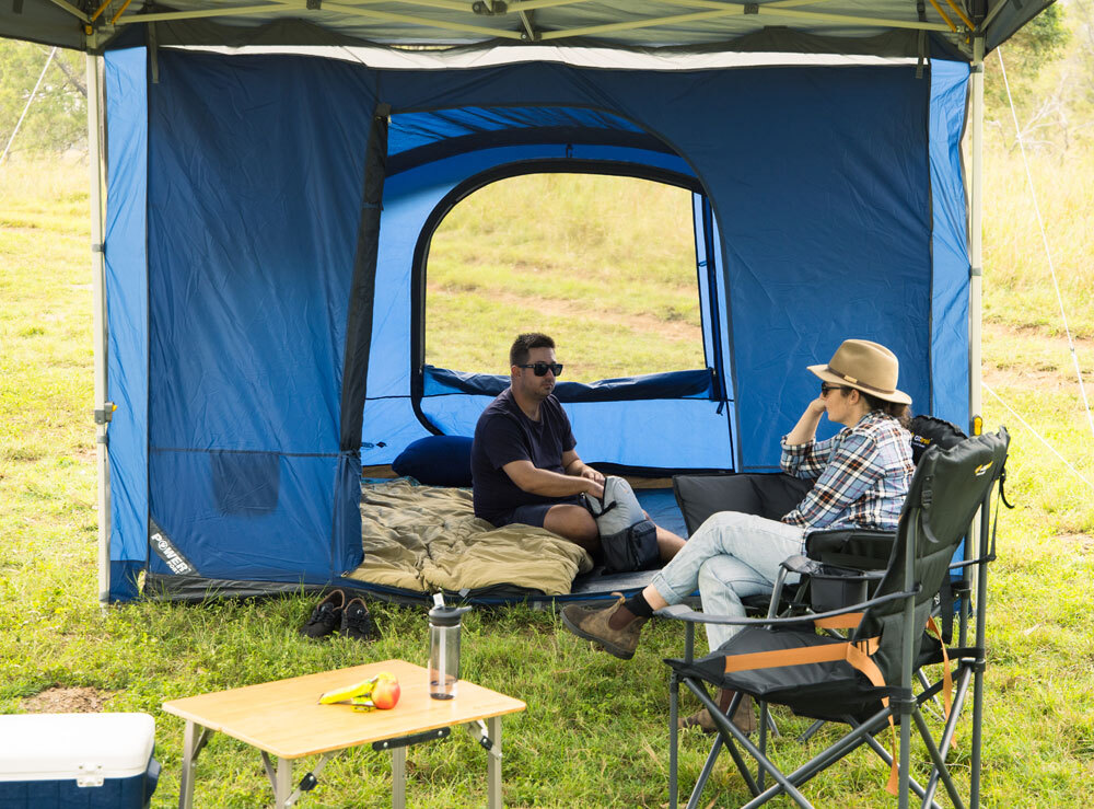 The OZtrail Portico Deluxe 3m is the perfect addition to your gazebo setup, providing extra living space or an additional bedroom for those busy campsites.