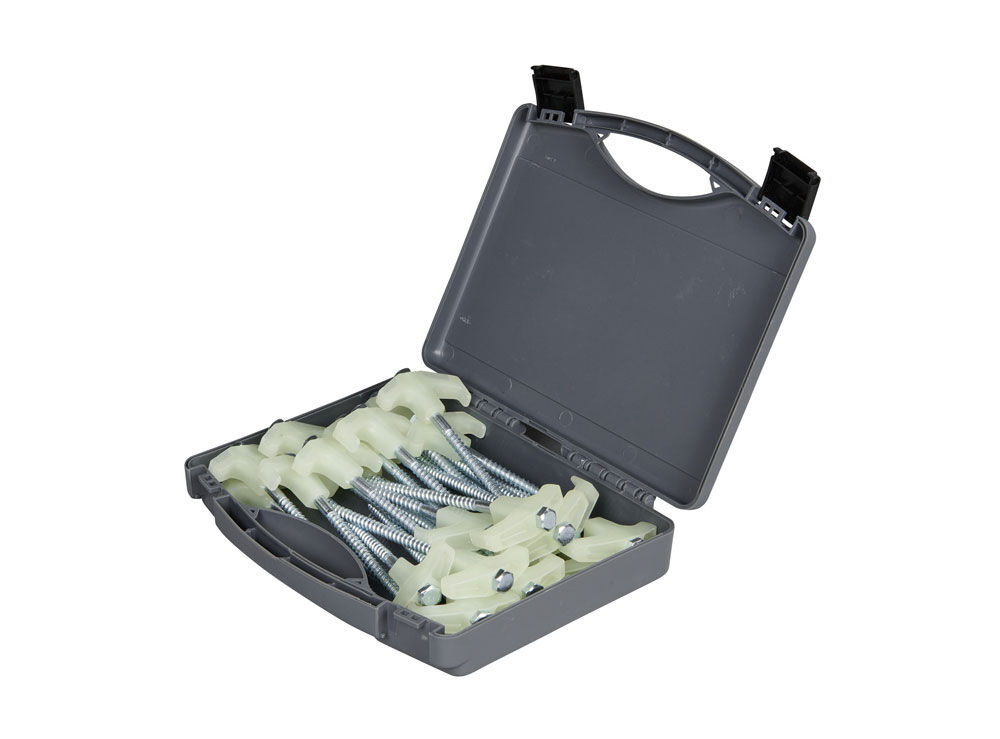Includes: 24 x pegs, 1 x 13 mm socket, 1 x Carry case
