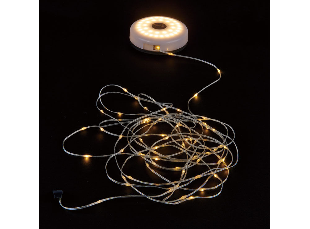 These versatile lights feature 36 LEDs strung along a 9-metre cord, powered by a built-in battery that can power the lights for up to 9 hours and also serve as a power bank. The lightweight construction makes it easy to pack and string up wherever you need a bit of atmosphere. The string lights feature 5 functions: always on warm white, flashing RGB, fading RGB, always on warm string light with lantern, and lantern only.