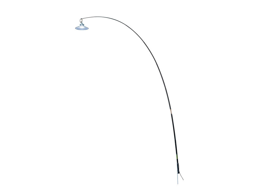 - Approximately four metres tall when fully extended with the fibreglass pole, the fibreglass pole allows the light to shine directly over the campsite