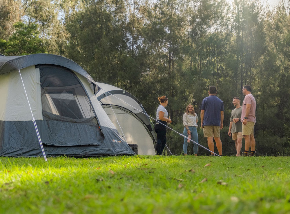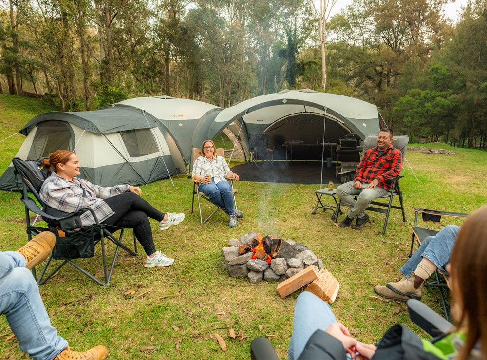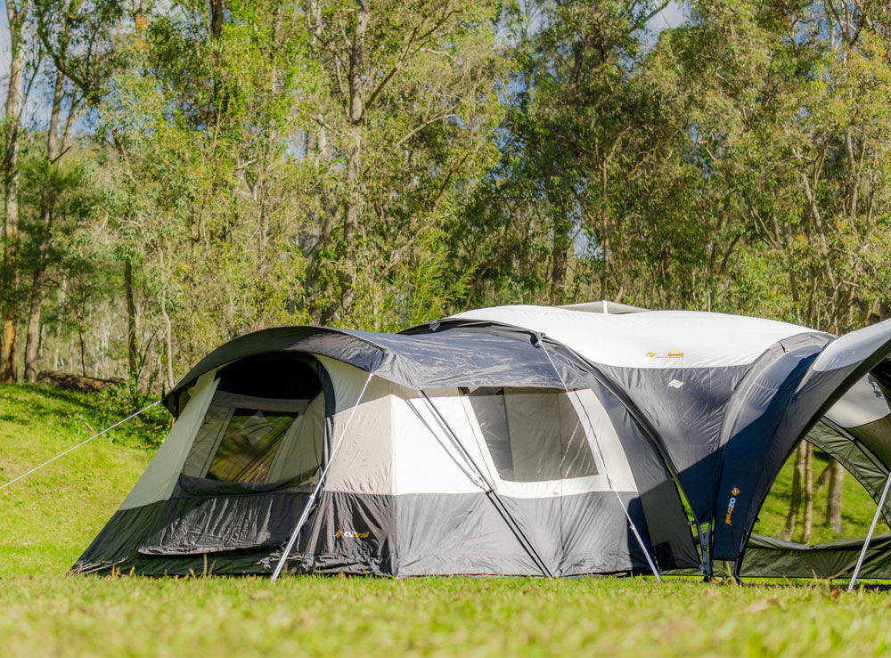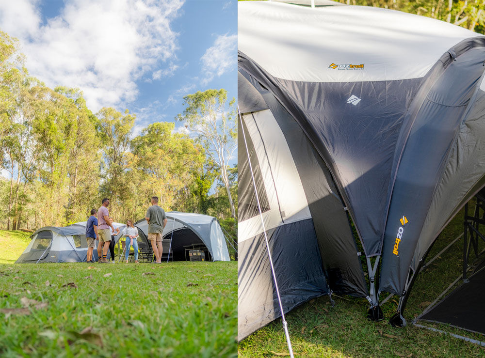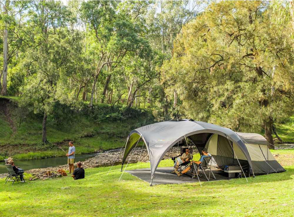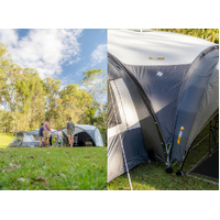 Transform your campsite with the OZtrail Shade Dome Deluxe Portico Tent – a versatile addition to your OZtrail 4.2m Shade Dome setup (sold separately).