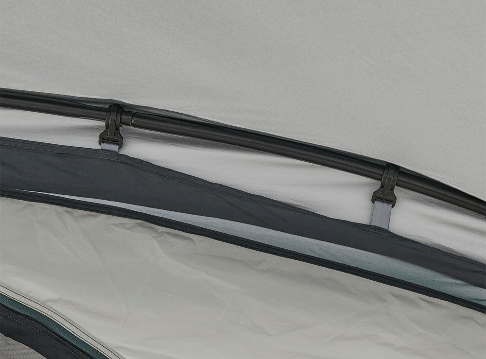 The flysheet can be fully rolled back for improved airflow and stargazing, while the zippered PowerPort™ pocket makes it easy to run cables inside.