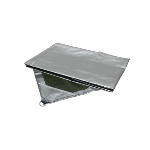 Made of strong silver coated, high density polyethylene with low density polyethylene laminated to the top and bottom surfaces for maximum shade, waterproofness and strength.