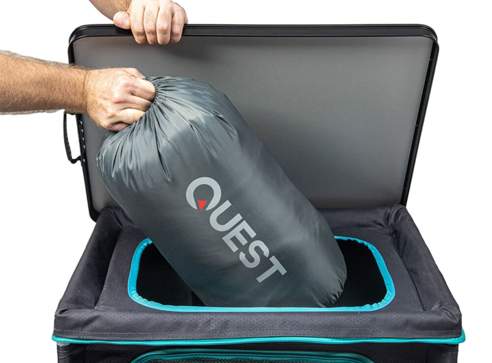 The Quest Pop Top 3 shelf cupboard provides a sturdy storage solution for shorter stays, featuring a sturdy steel frame, 2 shelves, plus an all-weather hardtop to cater for all your campsite storage needs.