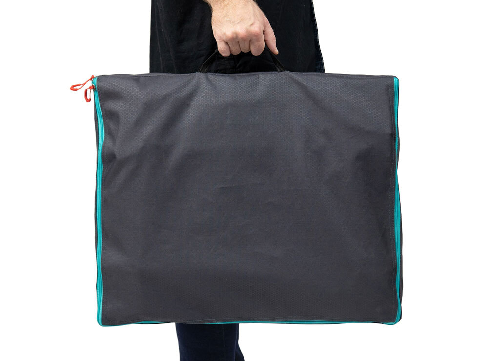 Both the shelves and carry bag are integrated, which makes setup and packing down a breeze; also means you can’t leave them at the campsite.