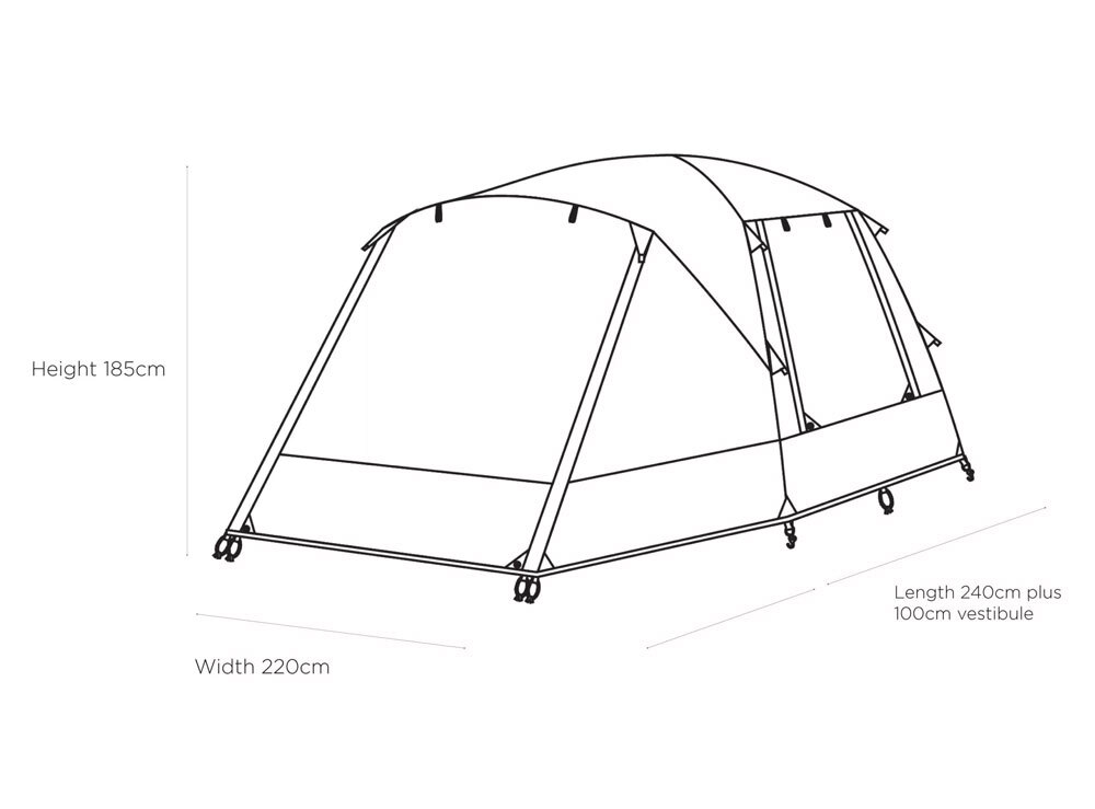 It’s ideal for warmer climates, the super breathable polyester and large side windows provide plenty of airflow on balmy summer nights. Ultra-fine midgie-proof inner mesh ensures that any pesky bugs are kept outside the tent. When the rain starts falling, you’ll stay dry thanks to the waterproof fly sheet with 2000mm polyurethane coating. A waterproof vestibule gives you space to keep your excess gear dry and out of the tent while the oversized doors offer easy access.