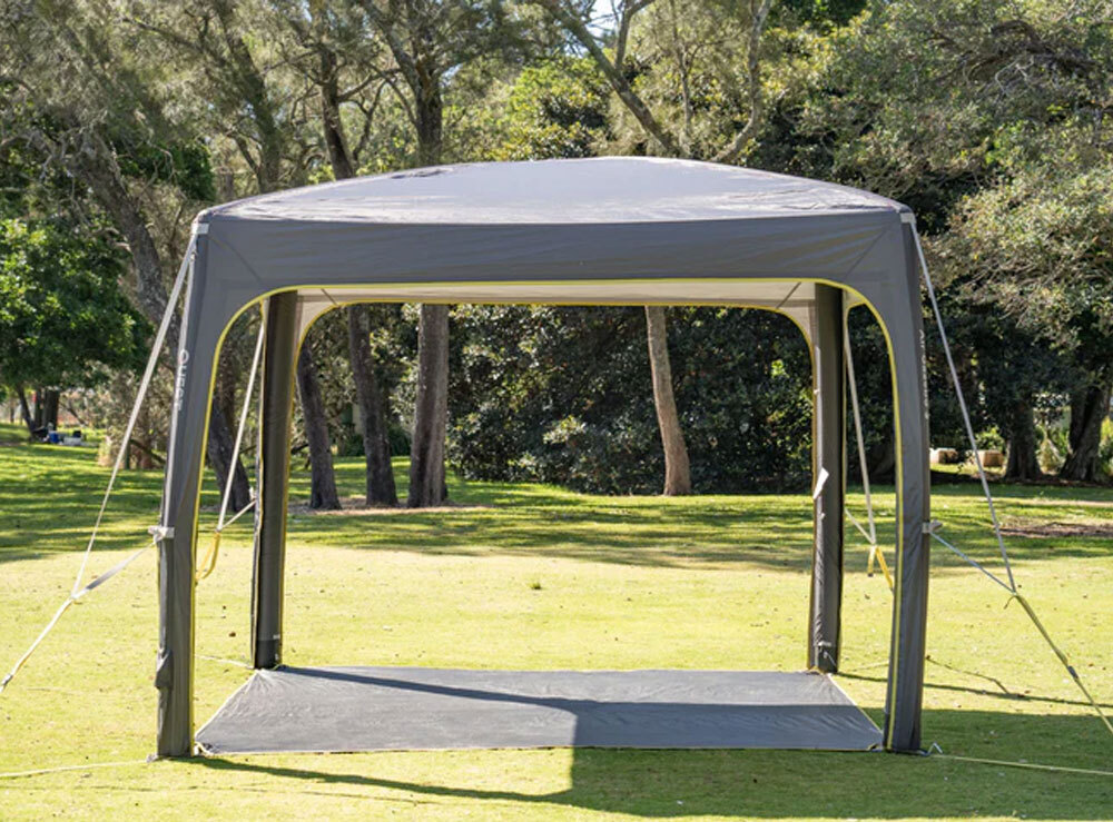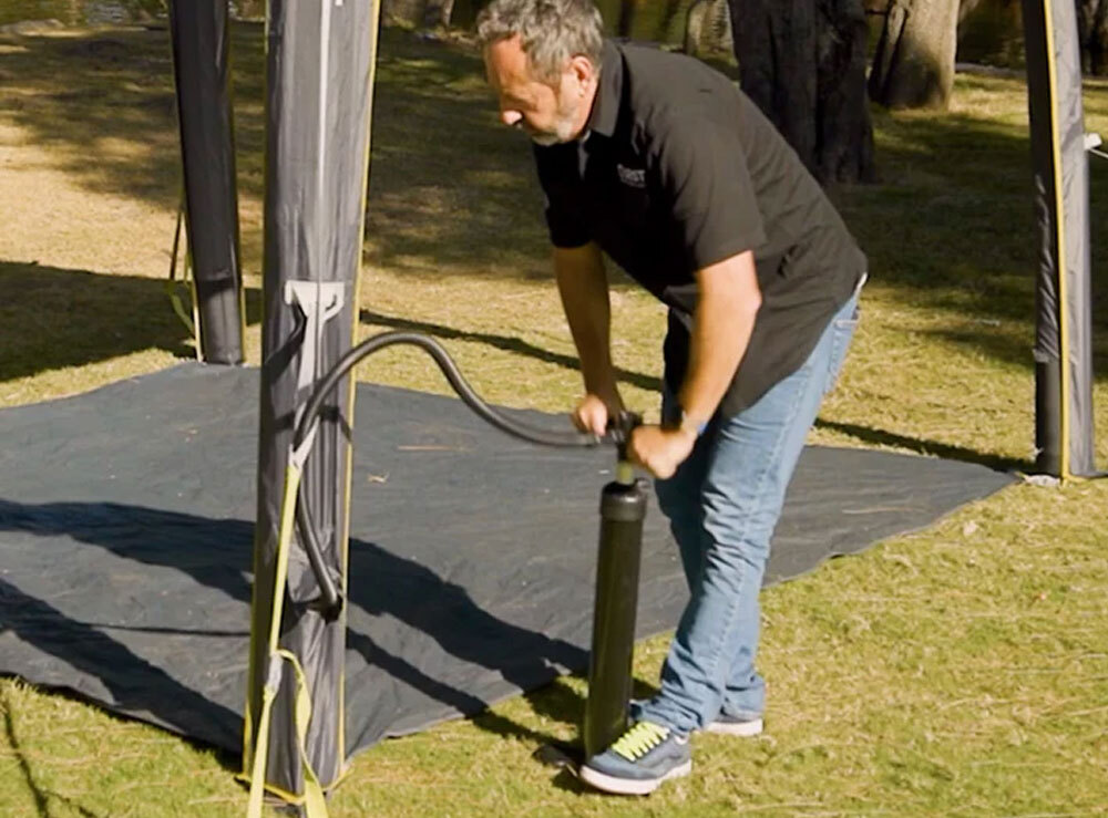 The double action hand pump includes a pressure release valve and safety gauge to make sure there are no mishaps. The included groundsheet makes pitching the gazebo easier - you can remove it if you like. This air gazebo is built to be tough enough for most New Zealand conditions.