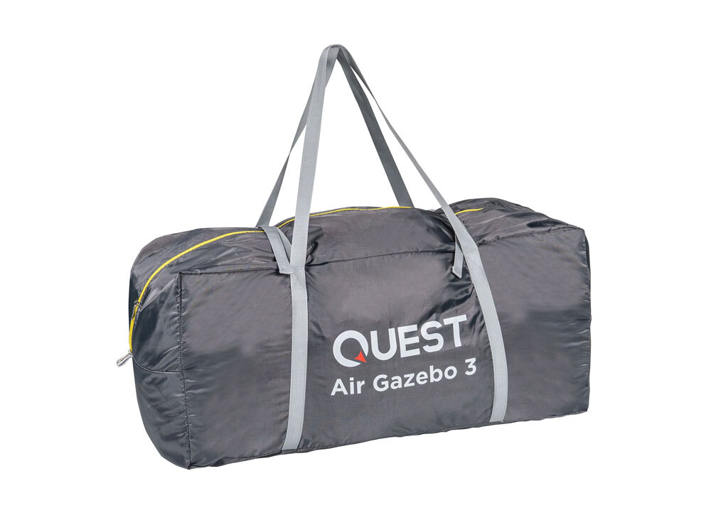 The Quest Air Gazebo 2.4 packs up 60% shorter and 50% lighter than its traditional counterparts. At the same time, single-point inflation makes setup a breeze - the canopy and airframe are integrated so that you can be set up in under five minutes - max.