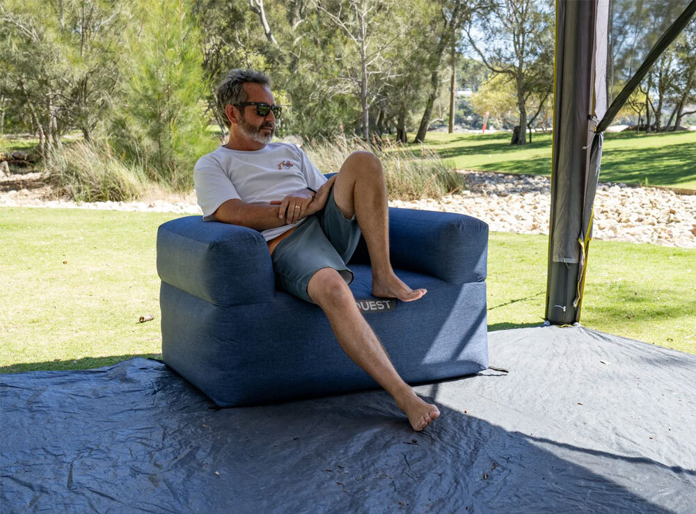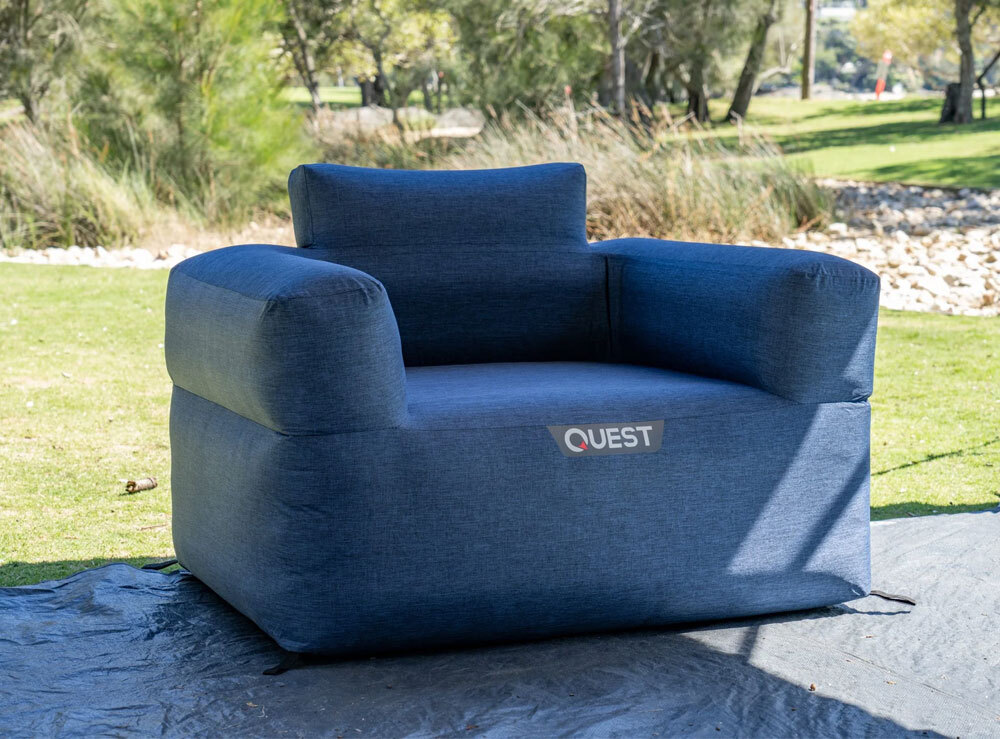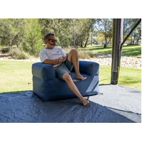 Who takes an armchair to the campsite? It’s like the king or queen's throne. Introducing the epitome of versatility: the Quest Air Sofa 1 Seater - Navy, your all-in-one solution for comfort, whether under the stars or in the cozy confines of your home. Engineered for modern adventurers, its compact design effortlessly transitions from a camping companion to an indoor/outdoor lounge with ease.