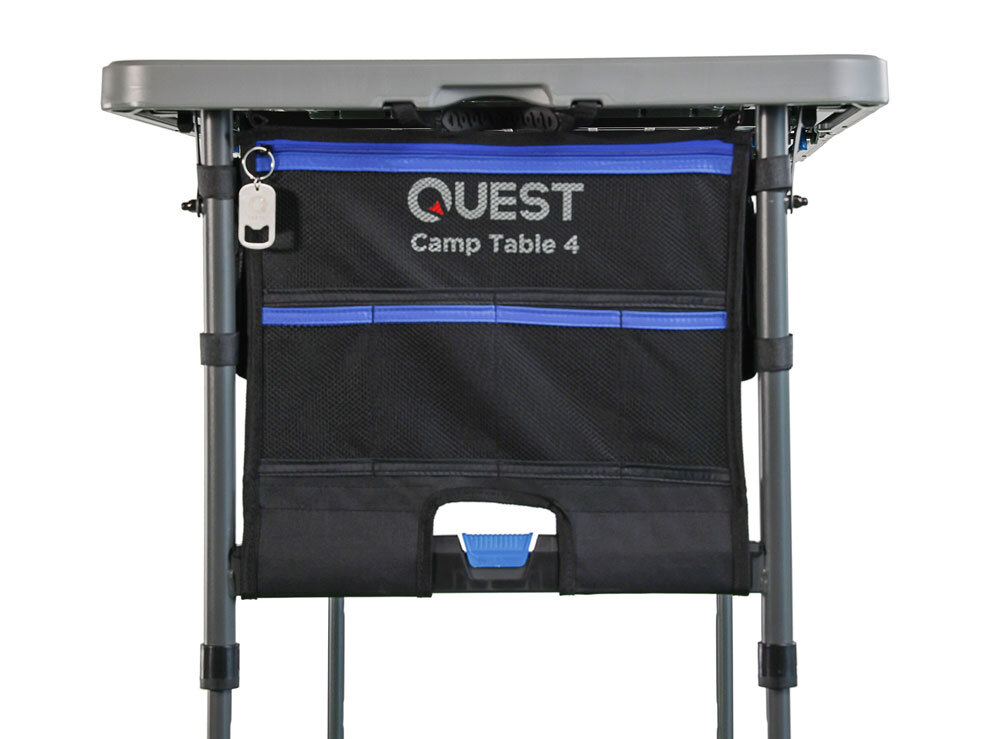 - Includes bottle opener, under table gear hammock and organiser with zippered pouch and 4 pockets
