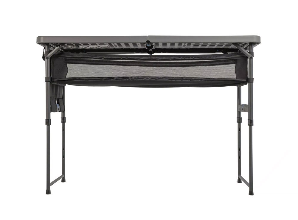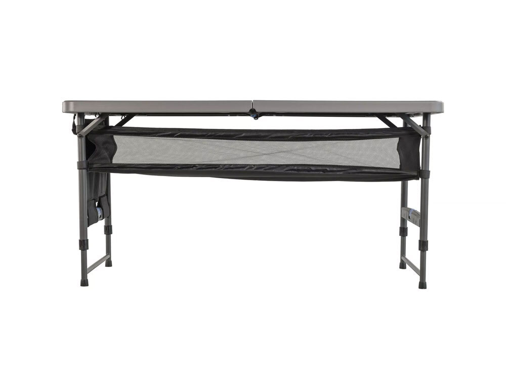 When it comes to storage we've got you covered, with an under-table storage hammock and side storage organiser. Both do not need to be removed so setup and pack down is a breeze. The tabletop is blow moulded and UV protected to prevent damage from the sun’s rays. Set your table to your height with the Quest Camp Table 4 with Storage.
