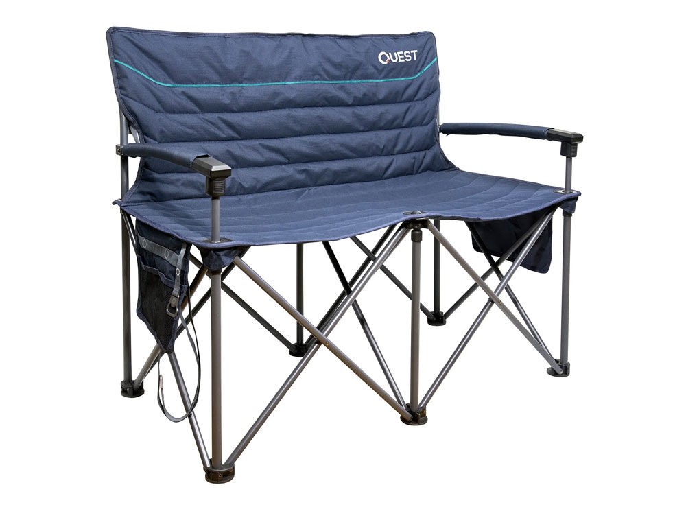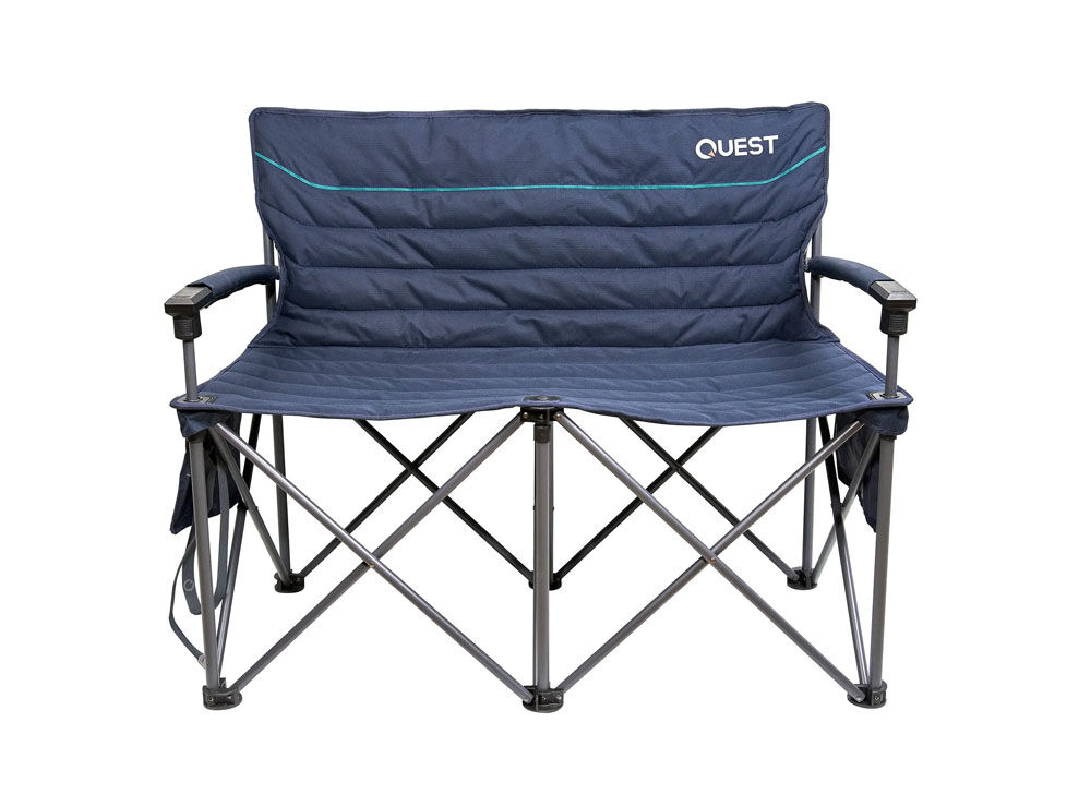 Lounge in comfort with the Quest Castaway 2 Seater Sofa, perfect for two at campsites, parks, or concerts. Made from durable 600D ripstop polyester, it features a sturdy powder-coated steel frame and double-layer padding for lasting comfort. Hard arms simplify entry and exit, while the rear mesh pocket and side organizer pockets keep your essentials close, plus side organiser pockets.